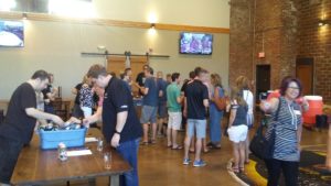 Moontown Brewing bottle share. For those who have done a bottle share or two, they know that there is no reason to apprehensive, but for those who haven’t heard of them or participated, here’s a short description of the event Indiana On Tap held at Moontown Brewing last Friday evening (May 24). It was a great time, but it isn’t the only way bottle shares can be run – for example, this bottle share had about a hundred people and over 200 bottles!