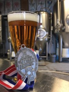 Hey Beer Lovers! As many of you know we have won many state level awards for our great beer and now we are happy to say that we have won a national award. Our Smoke on the Lager Rauchbier won a silver medal at the Great American Beer Festival in the Smoke Beer category. Our brewer, Dan, works hard at brewing beers to style and this one obviously scored well with the judges in Denver. Luckily, just 2 weeks before the competition Dan brewed a batch of the Smoked Lager so it’s now on tap!