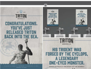 Head Brewer/Partner, Jon Lang and David Waldman, Co-Founder at Triton, explained, “The Flatland helped us uncover our true brand story and bring it to light. Originally, Triton was named for its superior water quality. What people want in a brand is the same thing they want in a beer: Genuine ingredients. Honesty. Truth. The Flatland established a ‘Brewed on Base’ message that really resonates. We brew on a former military base—in a reclaimed mule barn, of all things. That alone is a cool story. What’s more, the trident (our logo) was carried into battle by the 97th infantry in WWI and WWII. And Triton, himself? His body was half human/half fish. Our beer comes from two worlds, too: a storied history paired with best in modern brewing techniques.”