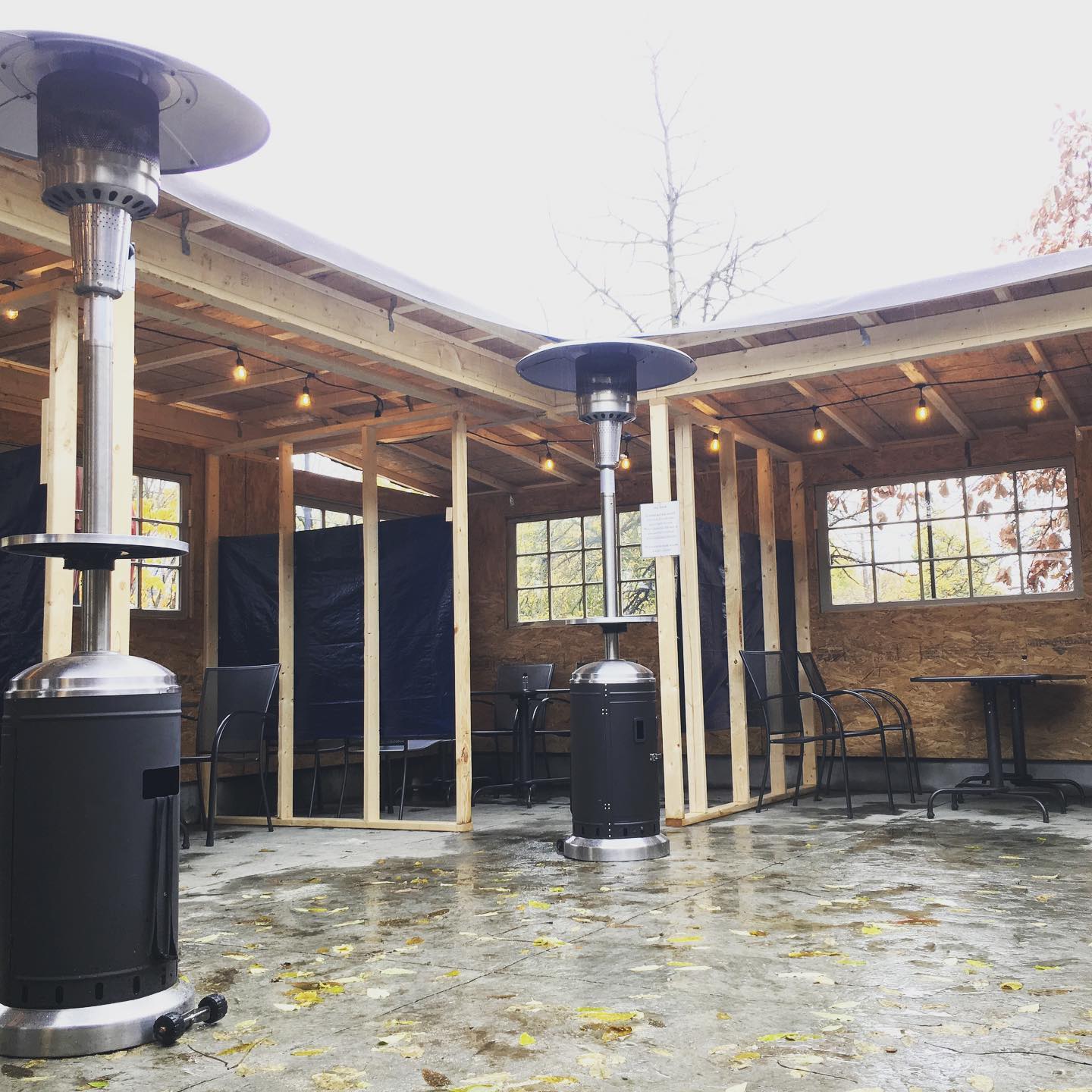 Mayfair Taproom in Indianapolis – Alec and Hillary built some temporary walls and partial covering for their patio with propane heaters to help keep things warm through the winter.  If you look at their social media you can see some pictures of what they’ve done.  Tables will still be first come first serve, with no minimum purchases.