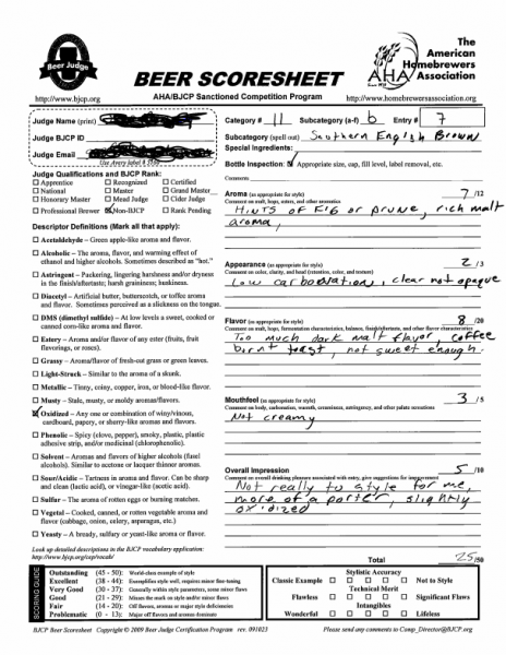 A judging sheet can be hard to read, but it could end up being the key to a medal. image credit BJCP