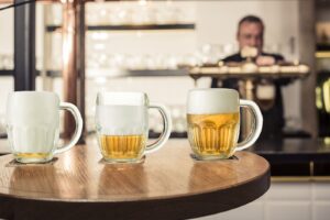 The snyt pour is about 60% foam and the angle of the pour changes the carbonation and the bite. The hladinka pour is a classic lager pour, with about 3 fingers of dense head, while the cochtan is all beer, no head. I don’t really recommend drinking beer the cochtan way, but some west coast IPA fans swear by it because it maximizes bitterness and bite, and minimizes hop aroma and flavor. (There are couple more pour types, but they mostly depend on the order of the angle and straight portions of the pour.)