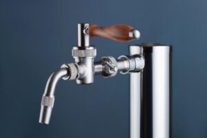 A side pull faucet facilitates the control of foam by using all of the differences we mentioned above. The side pull is much more sensitive than a traditional faucet, with every minute movement resulting in a change in the amount of beer coming out. The larger diameter of the opening on a side pull faucet allows for a smooth delivery (almost laminar), and to control the foam based on the angle at which you draw beer.